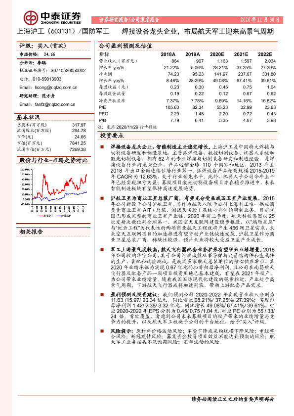 【中泰证券】【20201130】上海沪工-603131.SH-焊接设备龙头企业,布局航天军工迎来高景气周期-29页