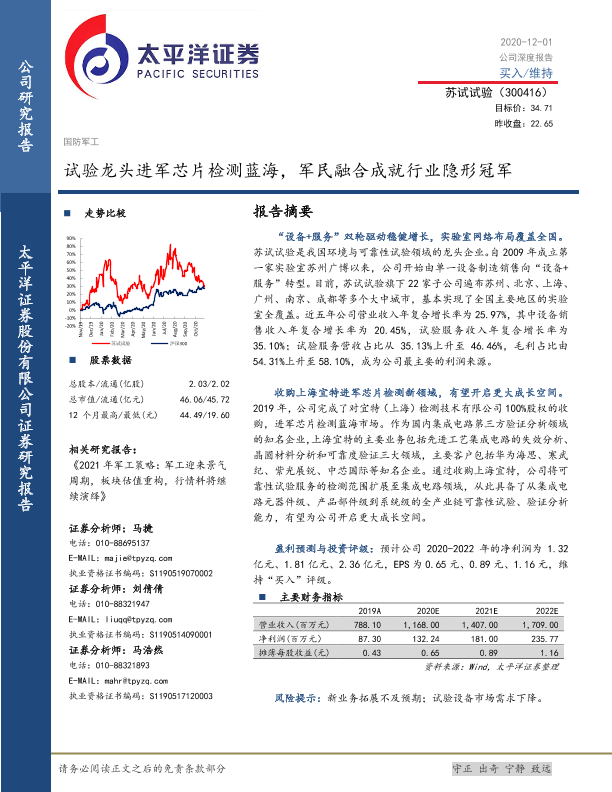 【太平洋证券】【20201201】试验龙头进军芯片检测蓝海,军民融合成就行业隐形冠军-31页
