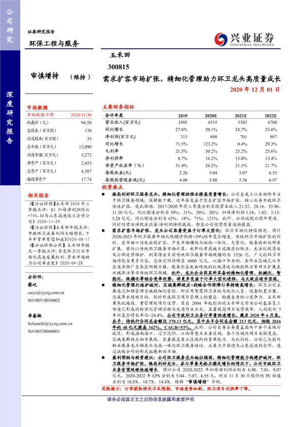 业绩增长 市场扩张 环保行业 环卫服务 精细化管理
