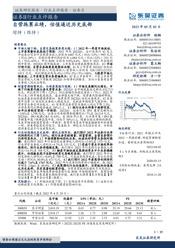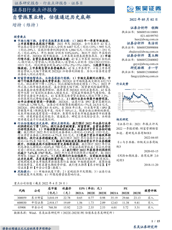 【东吴证券】【20220502】证券Ⅱ行业点评报告:自营拖累业绩,估值逼近历史底部-15页