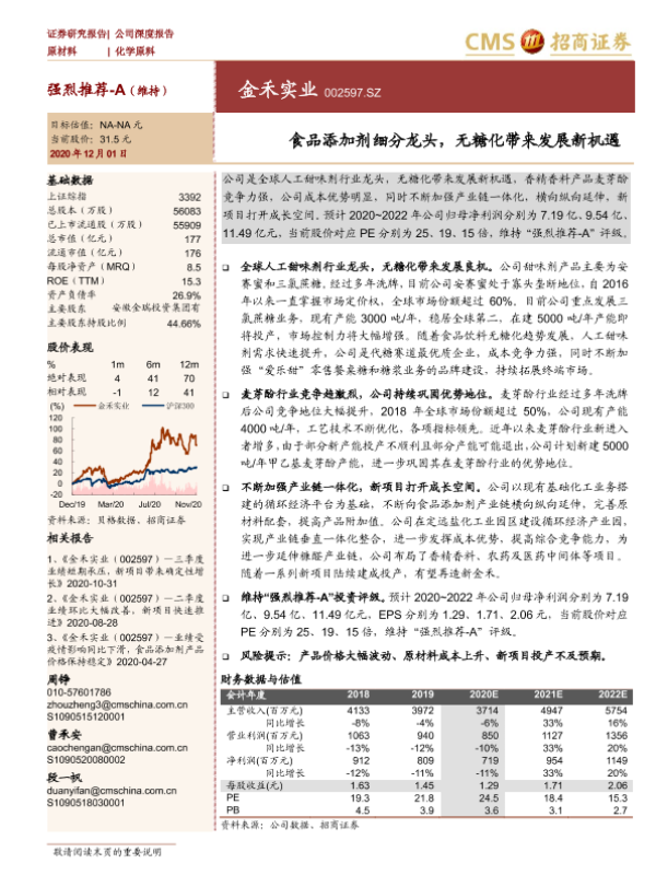 【海通证券】【20201201】金禾实业-食品添加剂细分龙头,无糖化带来发展新机遇-26页