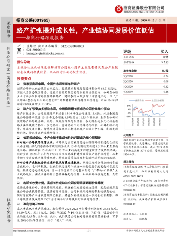 【浙商证券】【20201201】招商公路深度报告:路产扩张提升成长性,产业链协同发展价值低估-31页