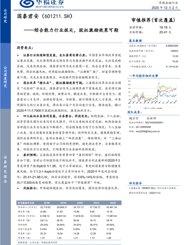 【华福证券】【20201202】国泰君安(601211.SH)——综合能力行业拔尖,股权激励效果可期-25页