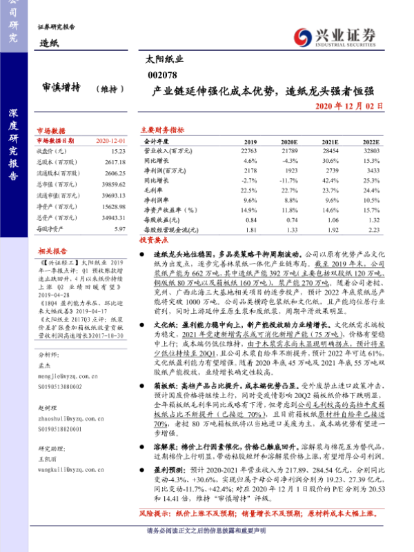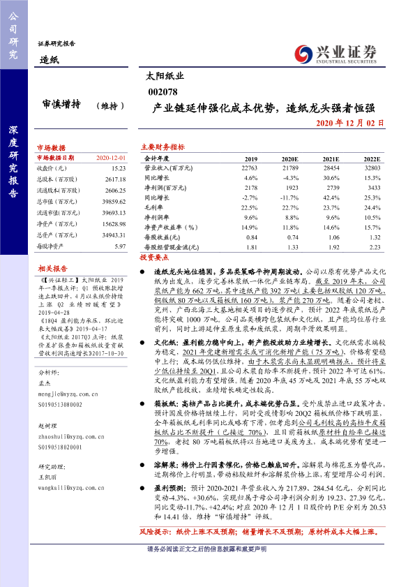 【兴业证券】【20201202】产业链延伸强化成本优势,造纸龙头强者恒强-37页