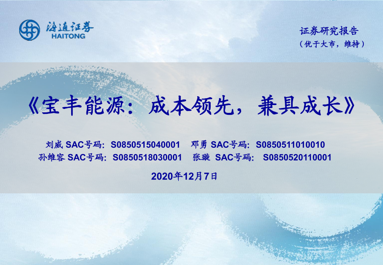 【海通证券】【20201207】宝丰能源:成本领先,兼具成长-37页