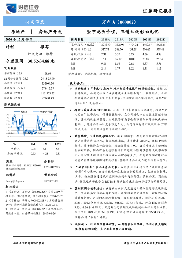 【财信证券】【20201209】万科A-000002.SZ-坚守龙头价值,三道红线影响无忧-24页