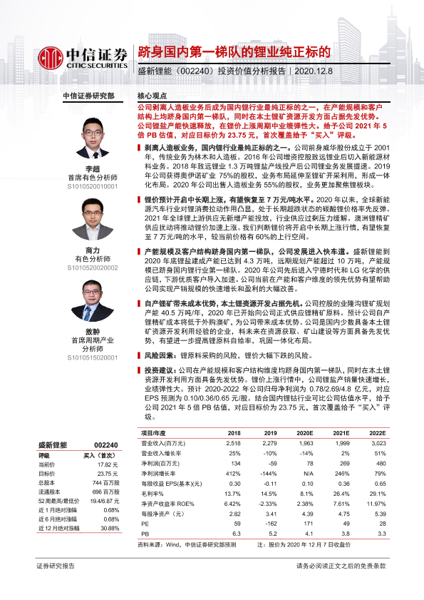 【中信证券】【20201208】跻身国内第一梯队的锂业纯正标的:盛新锂能(002240)投资价值分析报告-24页