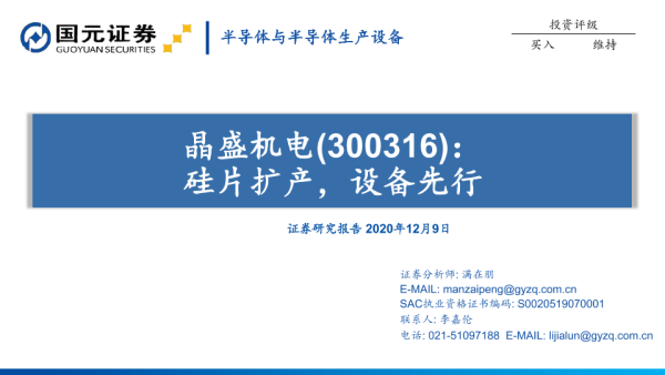 【国元证券】【20201209】晶盛机电:硅片扩产,设备先行-43页