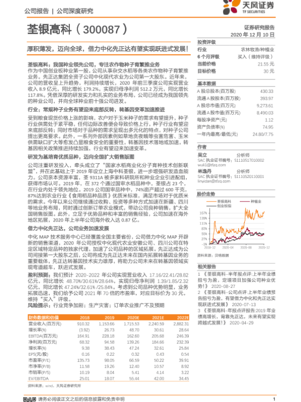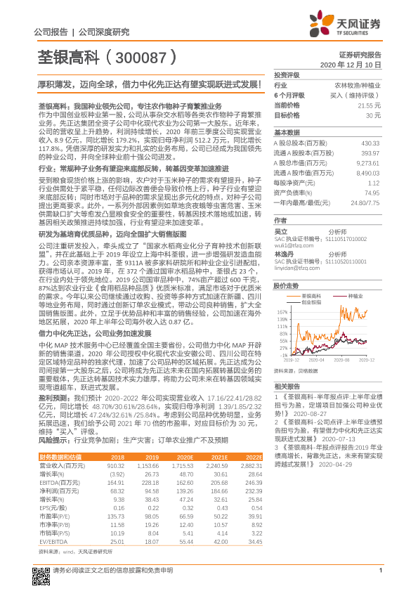 【天风证券】【20201210】荃银高科-厚积薄发,迈向全球,借力中化先正达有望实现跃进式发展!-32页