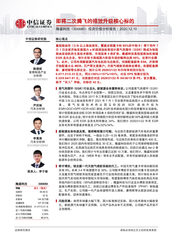 【中信证券】【20201210】20201210-中信证券-隆盛科技-300680.SZ-投资价值分析报告:即将二次腾飞的排放升级核心标的-22页
