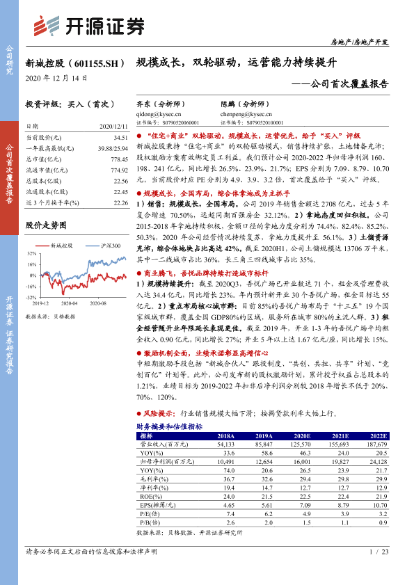 【开源证券】【20201214】新城控股-601155.SH-公司首次覆盖报告:规模成长,双轮驱动,运营能力持续提升-23页