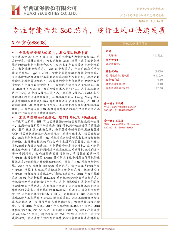 【华西证券】【20201216】专注智能音频SoC芯片,迎行业风口快速发展-41页