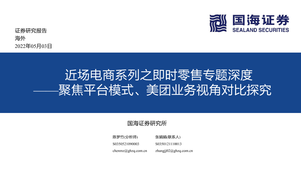 【国海证券】【20220503】近场电商行业系列之即时零售专题深度:聚焦平台模式、美团业务视角对比探究-80页