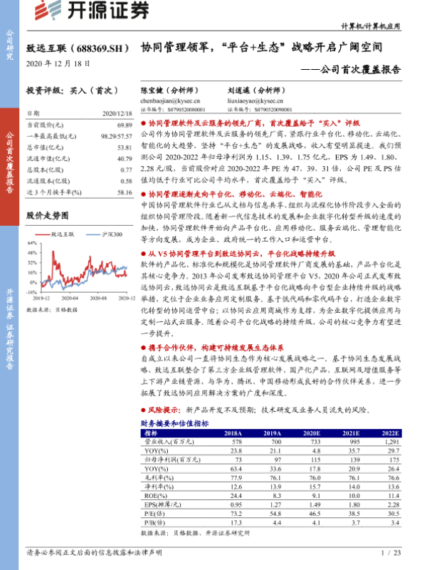【开源证券】【20201218】致远互联-公司首次覆盖报告:协同管理领军,“平台+生态”战略开启广阔空间-23页