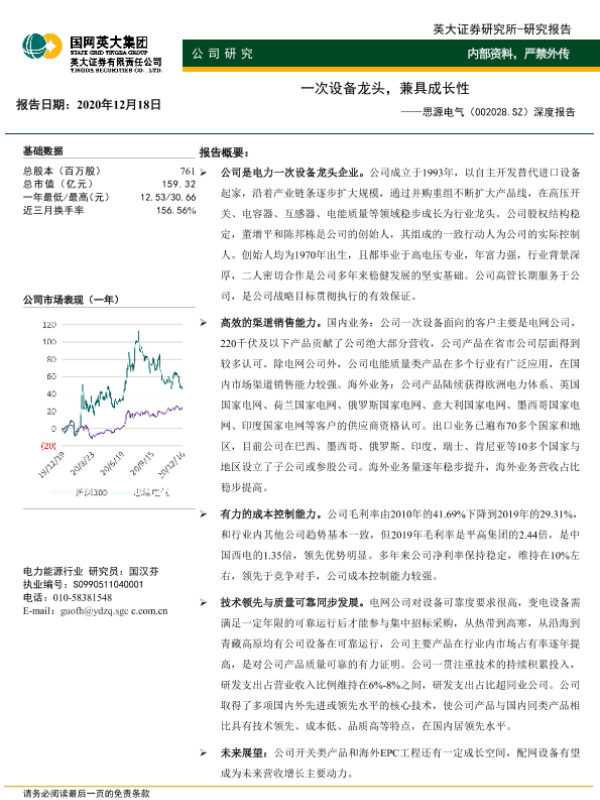 【英大证券】【20201218】20201218-英大证券-思源电气-002028.SZ-深度报告:一次设备龙头,兼具成长性-43页