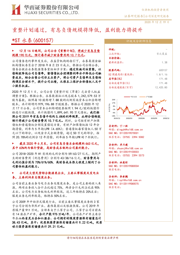 【华西证券】【20201219】20201219-华西证券-ST永泰-600157.SH-重整计划通过,有息负债规模将降低,盈利能力将提升-19页