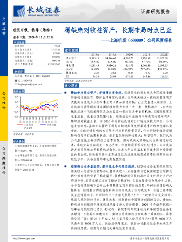【长城证券】【20201222】20201222-长城证券-上海机场-600009.SH-公司深度报告:稀缺绝对收益资产,长期布局时点已至-36页