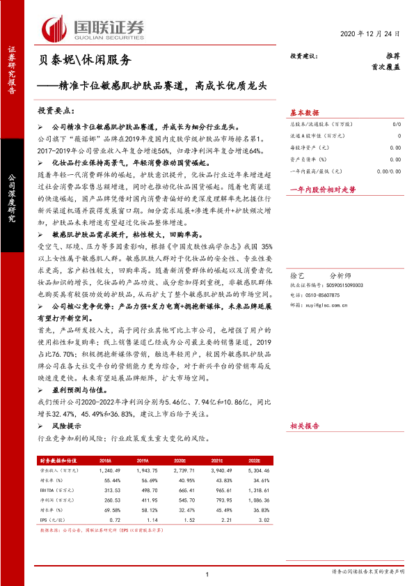 【国联证券】【20201224】精准卡位敏感肌护肤品赛道,高成长优质龙头-26页