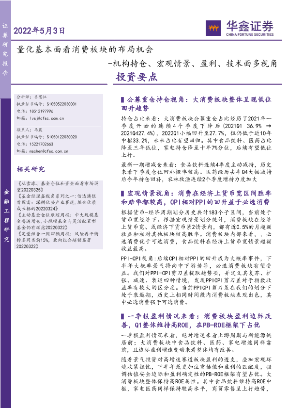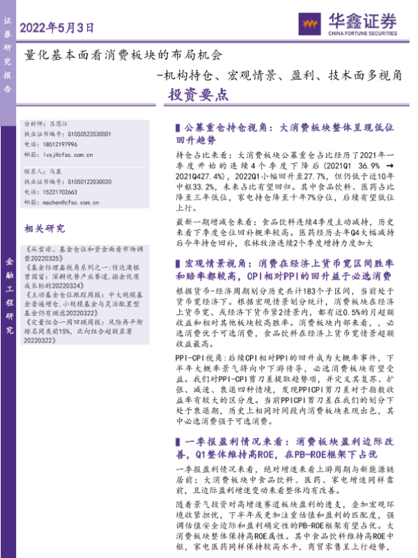 【华鑫证券】【20220503】量化基本面看消费板块的布局机会,机构持仓、宏观情景、盈利、技术面多视角-26页