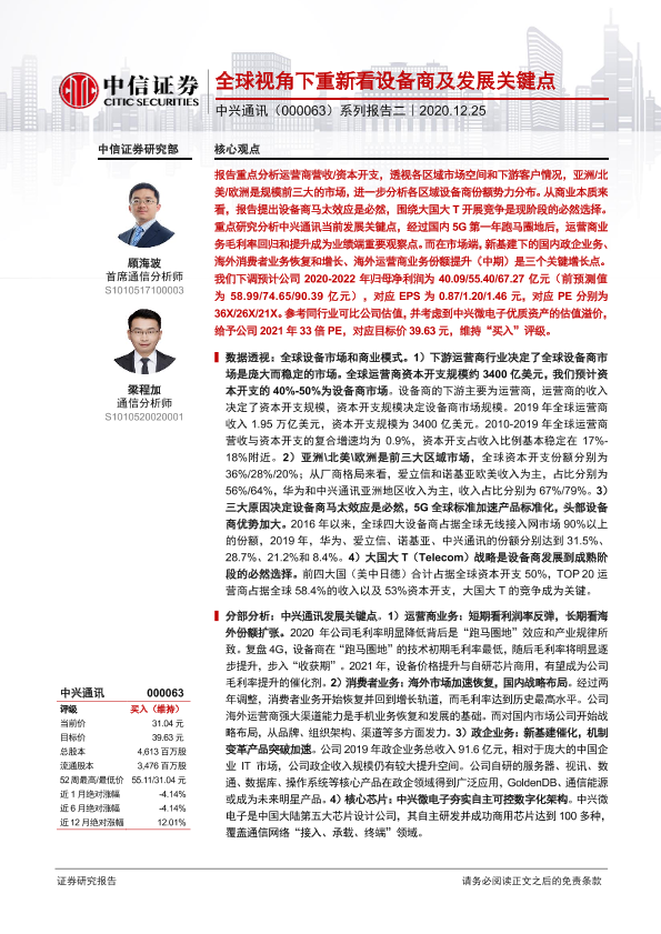 【中信证券】【20201225】20201225-中信证券-中兴通讯-000063.SZ-系列报告二:全球视角下重新看设备商及发展关键点-26页