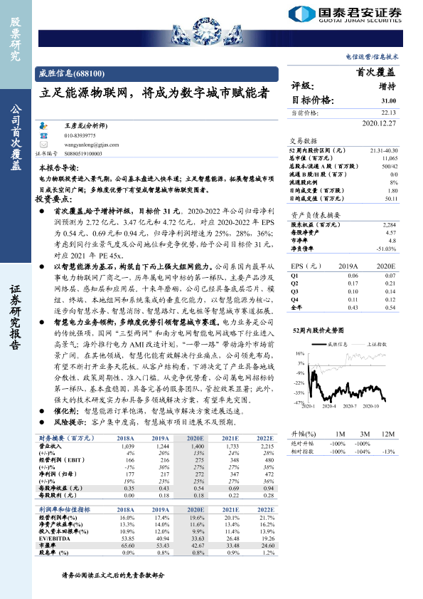 【国泰君安证券】【20201227】威胜信息(688100):立足能源物联网,将成为数字城市赋能者-32页