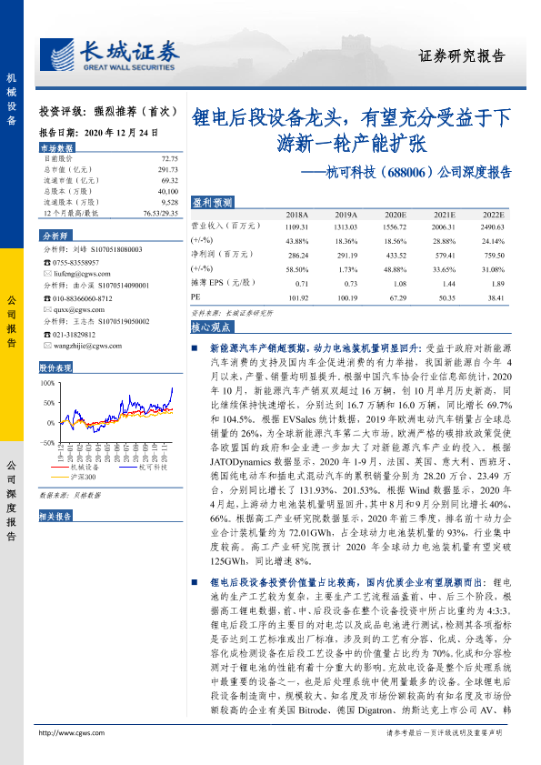 【长城证券】【20201224】20201227-长城证券-杭可科技-688006.SH-公司深度报告:锂电后段设备龙头,有望充分受益于下游新一轮产能扩张-33页
