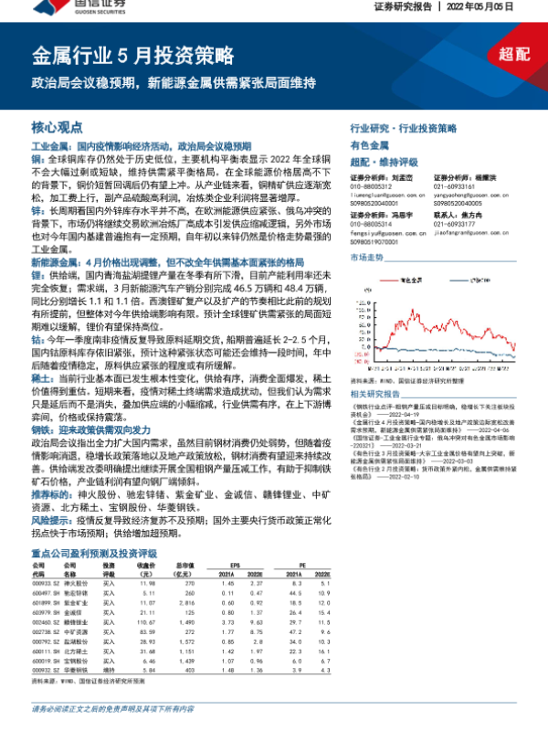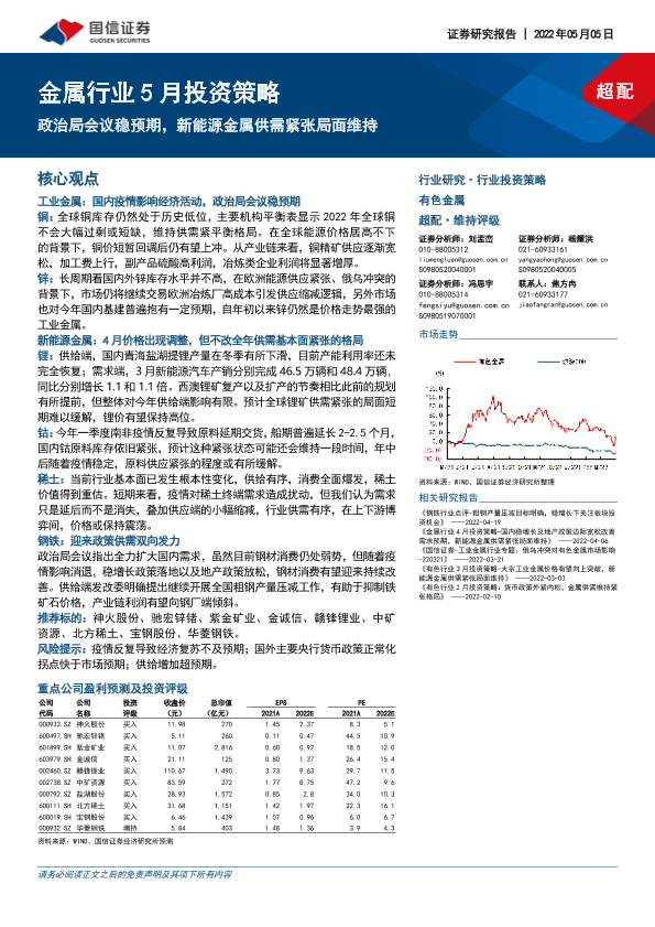 【国信证券】【20220505】金属行业5月投资策略:政治局会议稳预期,新能源金属供需紧张局面维持-31页