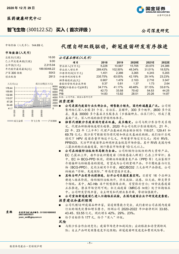 【国金证券】【20201229】智飞生物-300122.SZ-代理自研双线驱动,新冠疫苗研发有序推进-34页