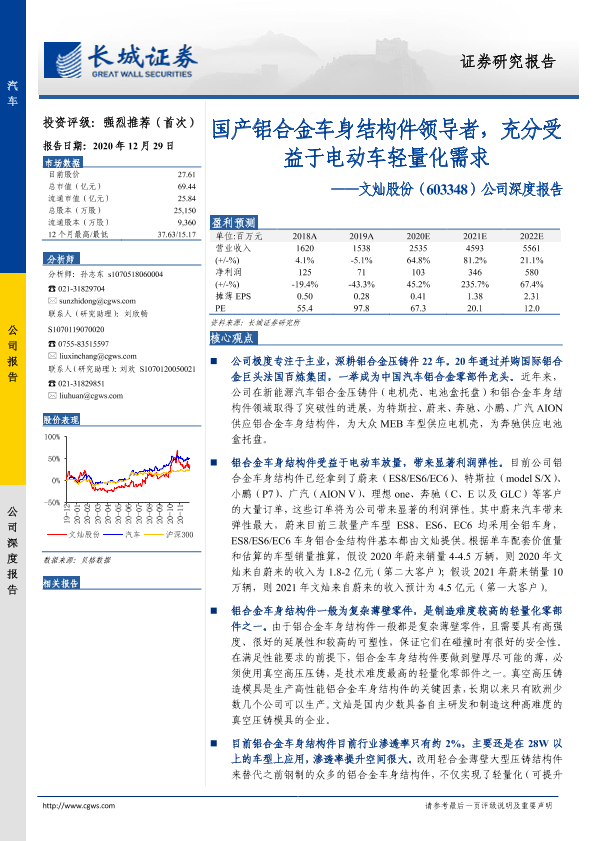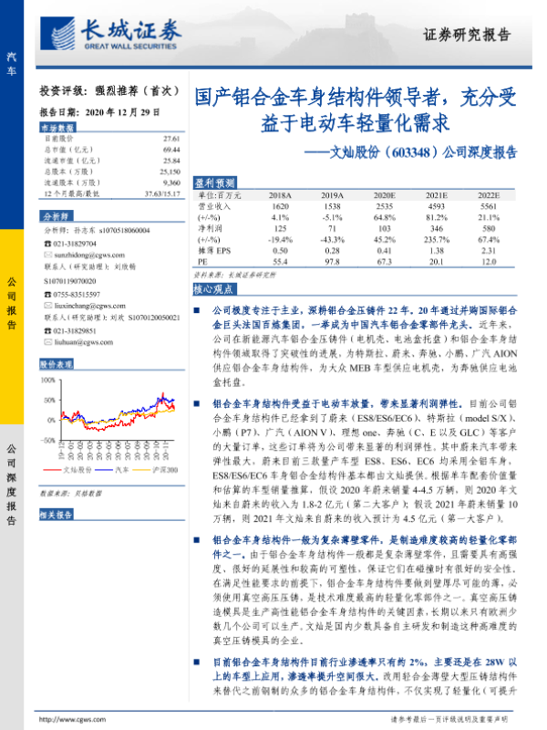 【长城证券】【20201229】20201229-长城证券-文灿股份-603348.SH-公司深度报告:国产铝合金车身结构件领导者,充分受益于电动车轻量化需求-27页