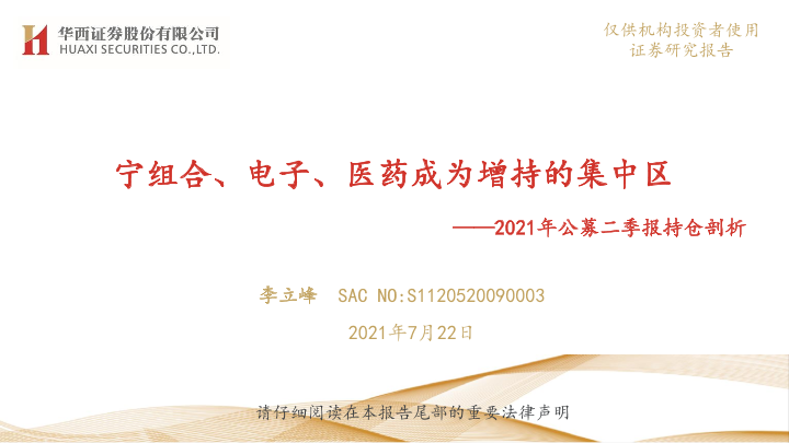 【华西证券】【20210722】2021年公募二季报持仓剖析:宁组合、电子、医药成为增持的集中区-72页