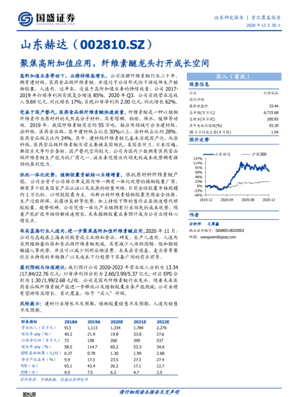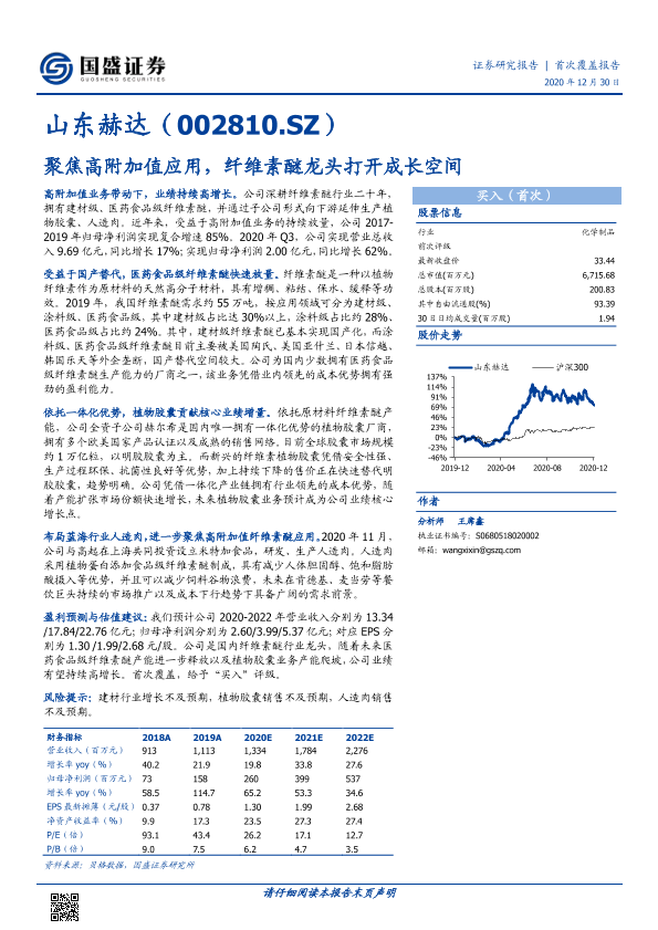【国盛证券】【20201230】山东赫达-聚焦高附加值应用,纤维素醚龙头打开成长空间-22页