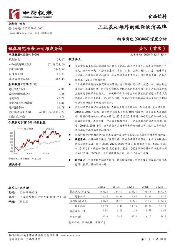 【中原证券】【20201230】20201230-中原证券-桃李面包-603866.SH-深度分析:工业基础雄厚的短保快消品牌-20页