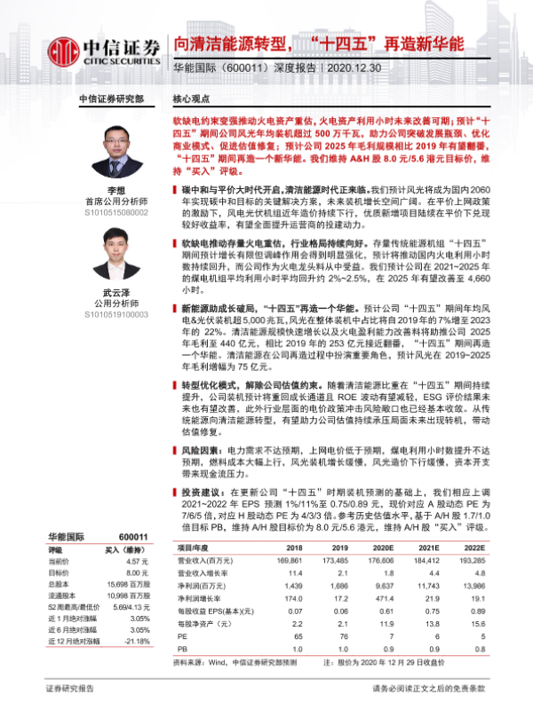 【中信证券】【20201230】20201230-中信证券-华能国际-600011.SH-深度报告:向清洁能源转型,“十四五”再造新华能-23页