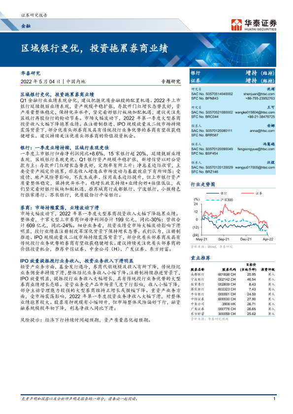 【华泰证券】【20220504】金融行业专题研究:区域银行更优,投资拖累券商业绩-24页