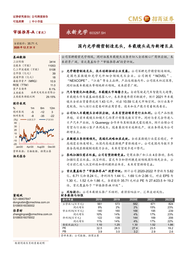 【海通证券】【20201231】永新光学-603297.SH-国内光学精密制造龙头,车载镜头成为新增长点-20页