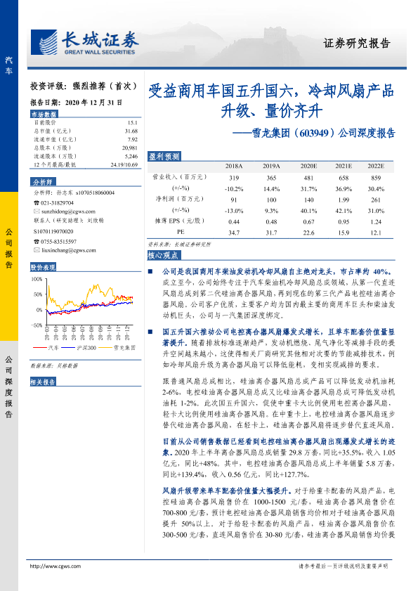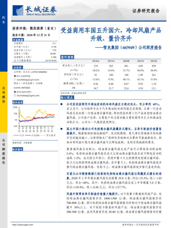 【长城证券】【20201231】20201231-长城证券-雪龙集团-603949.SH-公司深度报告:受益商用车国五升国六,冷却风扇产品升级、量价齐升-30页
