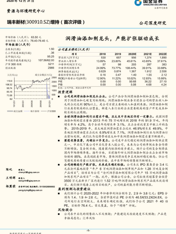 【国金证券】【20201231】瑞丰新材-300910.SZ-润滑油添加剂龙头,产能扩张驱动成长-24页