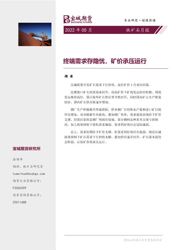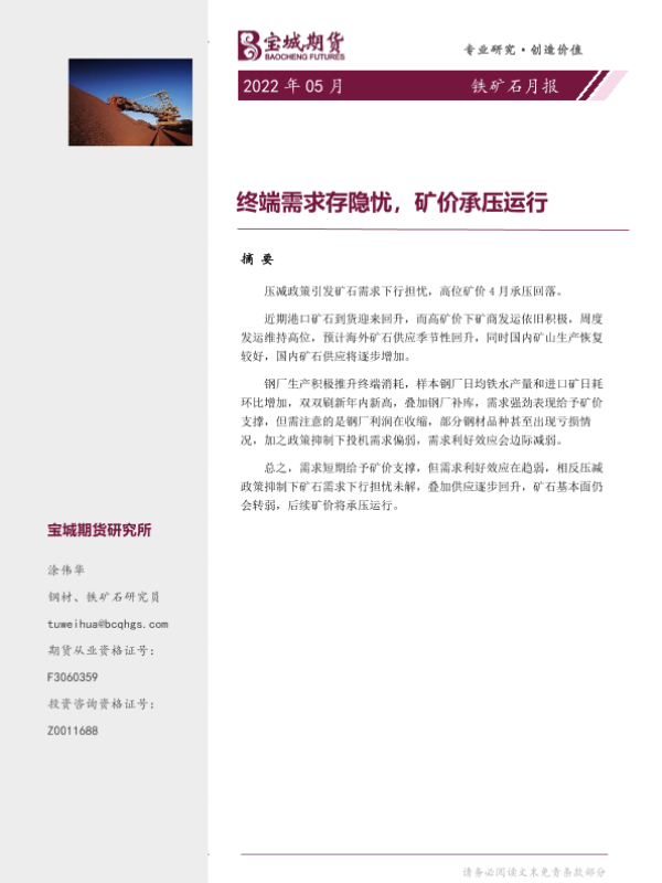 【宝城期货】【20220428】铁矿石月报:终端需求存隐忧,矿价承压运行-17页