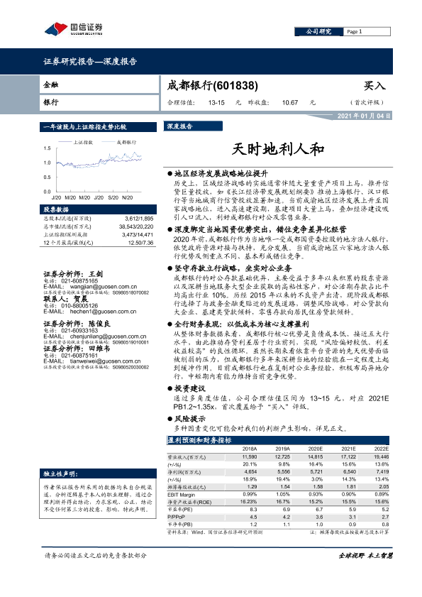 成都银行 投资建议 证券分析 金融行业 银行估值