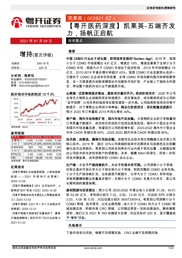 【粤开证券】【20210104】凯莱英:五端齐发力,扬帆正启航-22页