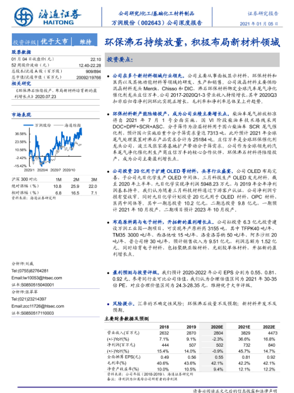 【海通证券】【20210105】20210105-海通证券-万润股份-002643.SZ-公司深度报告:环保沸石持续放量,积极布局新材料领域-23页