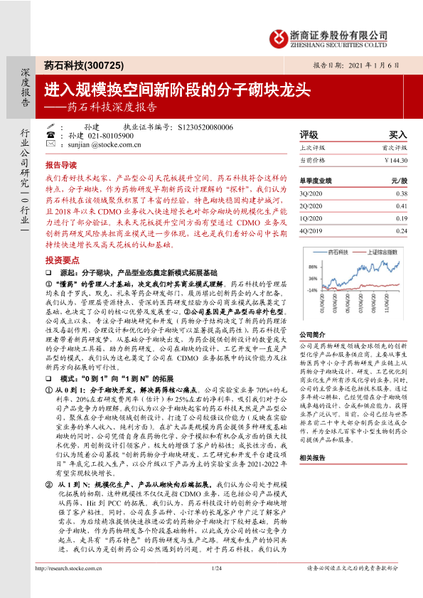 【浙商证券】【20210106】药石科技深度报告:进入规模换空间新阶段的分子砌块龙头-24页
