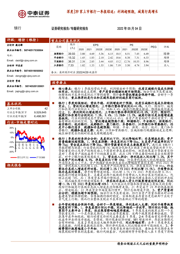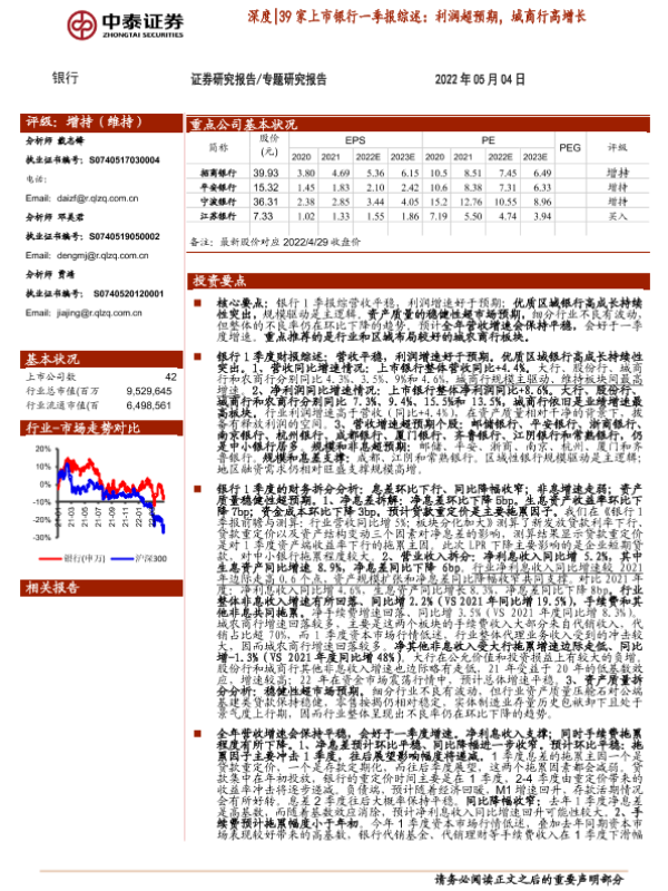【中泰证券】【20220504】银行业深度39家上市银行一季报综述:利润超预期,城商行高增长-38页