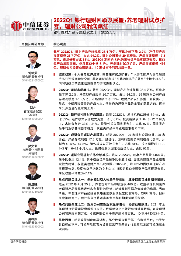 【中信证券】【20220505】银行业理财产品专题研究之十:2022Q1银行理财回顾及展望,养老理财试点扩容,理财公司利润飘红-24页
