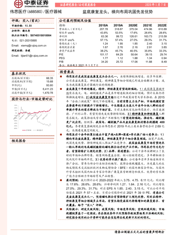 【中泰证券】【20210107】伟思医疗-688580.SH-盆底康复龙头,横向布局巩固先发优势-25页