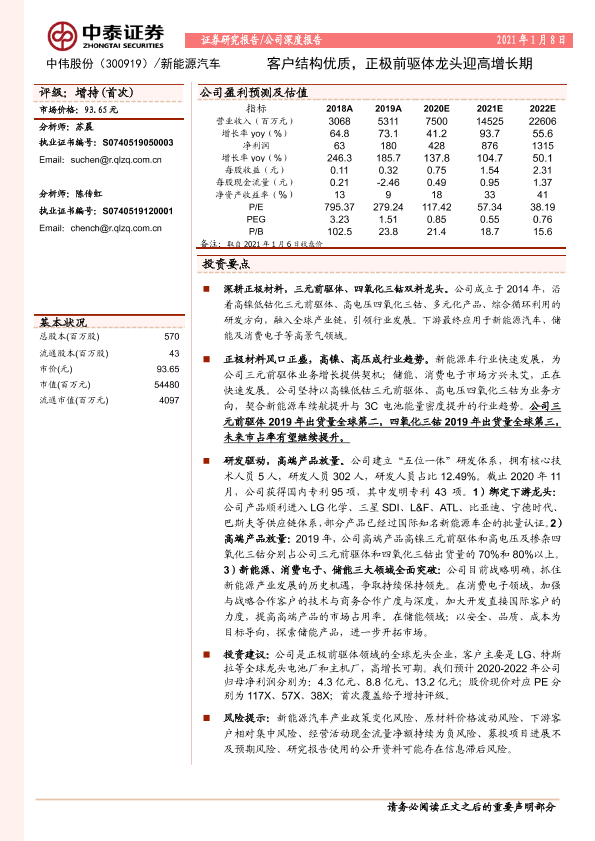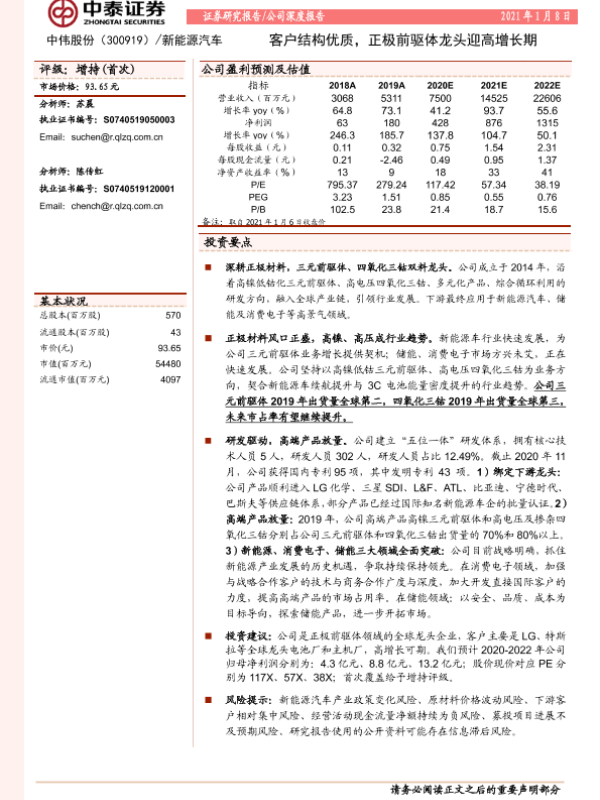 【中泰证券】【20210108】中泰证券-中伟股份-客户结构优质,正极前驱体龙头迎高增长期-31页