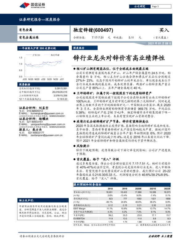 【国信证券】【20210108】20210108-国信证券-驰宏锌锗-600497.SH-锌行业龙头对锌价有高业绩弹性-50页