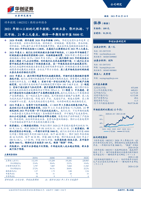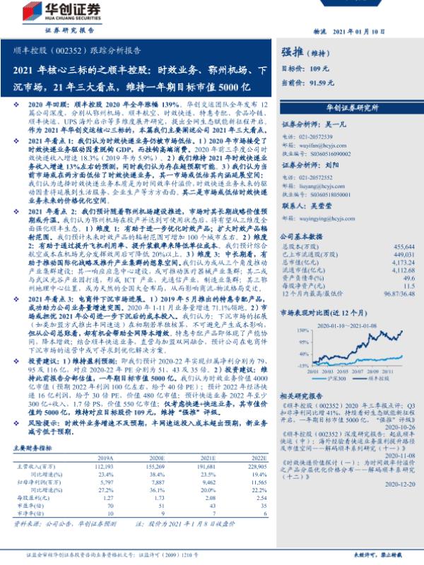 【华创证券】【20210110】2021年核心三标的之顺丰控股:时效业务、鄂州机场、下沉市场,21年三大看点,维持一年期目标市值5000亿-23页