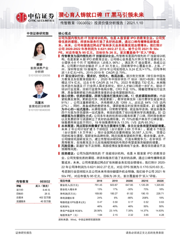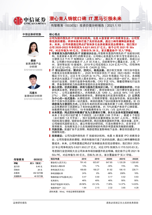 【中信证券】【20210110】传智教育-003032.SZ-投资价值分析报告:潜心育人铸就口碑IT黑马引领未来-36页