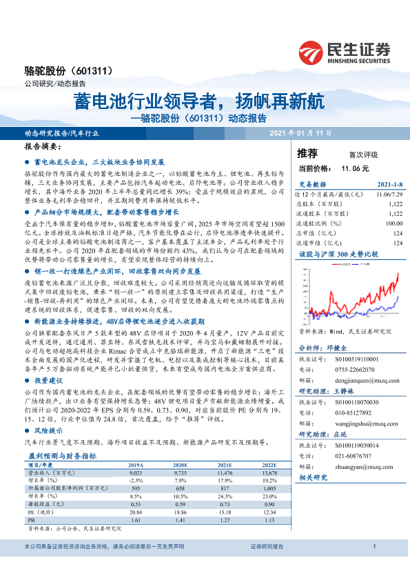 【民生证券】【20210111】20210111-民生证券-骆驼股份-601311.SH-动态报告:蓄电池行业领导者,扬帆再新航-30页